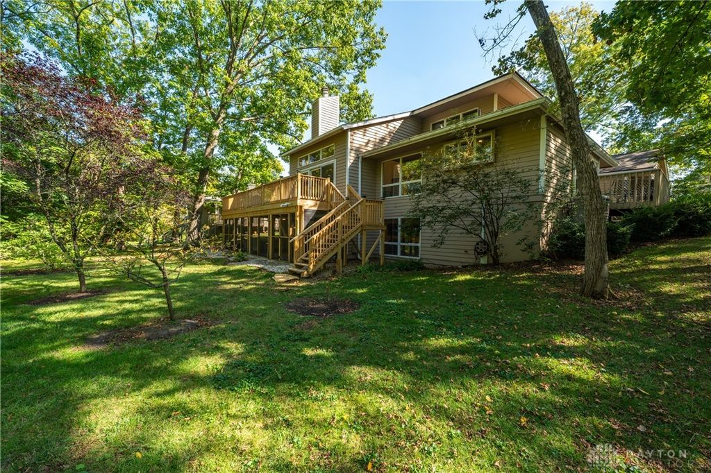 Stunning home within a maintained community! A private road leads you to the beautiful shaded lot, your own private drive as well as the 2 car garage. Step inside to experience luxury living. Engineered wood flooring meanders through the main level, creating a pathway that seamlessly leads to the grand living room, formal dining room, breakfast/family room as well as the chef's kitchen, that has been completely updated with white oak cabinets, high end appliances & quartz counters. Each of these rooms is accented by amazing views of the private back yard from the oversized windows, some with transom and some being floor to ceiling. Flooded with natural light, warmed by a gas fireplace and accented by a vaulted ceiling, this main level is sure to please. Half bath on the main level is perfect for guest use. WIth the primary on this level, you won't have to traverse steps if you choose not to. The primary en-suite bath is completely updated, with hexagon mosaic tile flooring as well as shower, also a private water closet, beautiful double vanity & arched mirrors. Upstairs you'll appreciate two more large bedrooms as well as a full bath. From the main level down to the lower level, you're greeted with an amazing space for entertaining. The large living room is open to the huge screened patio, plus your own wet bar, utility room, additional bedroom, flex room for guests or an office, storage as well as an updated full bath. The grounds are beautifully landscaped & can be enjoyed from the elevated deck that is accessed both from the living room as well as primary bedroom. The deck creates shade and protection for the screened patio below. Exterior maintenance creates low stress living, but you also have the perks of a freestanding home. Enjoy the community pool, tennis courts as well as clubhouse. Rare opportunity awaits, schedule a showing today!