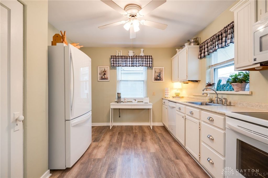 Cozy two bedroom vinyl sided ranch home has great curb appeal. You are within walking distance to Dorothy Lane Market, banks, shopping and bus line. Bright living room with gas fireplace, dining area overlooking year deck and fenced in yard. Two bedrooms and updated full bath with walk in shower. Kitchen with range, microwave, refrigerator with sink over looking rear yard. The basement has a l shaped rec room with gas fireplace, and utility room plus storage area. Note first floor floors are flex core cement providing a extremely well built home. The one car garage accesses into the kitchen. The rear deck off the dining area is a perfect spot to enjoy the well maintained fenced in rear yard.