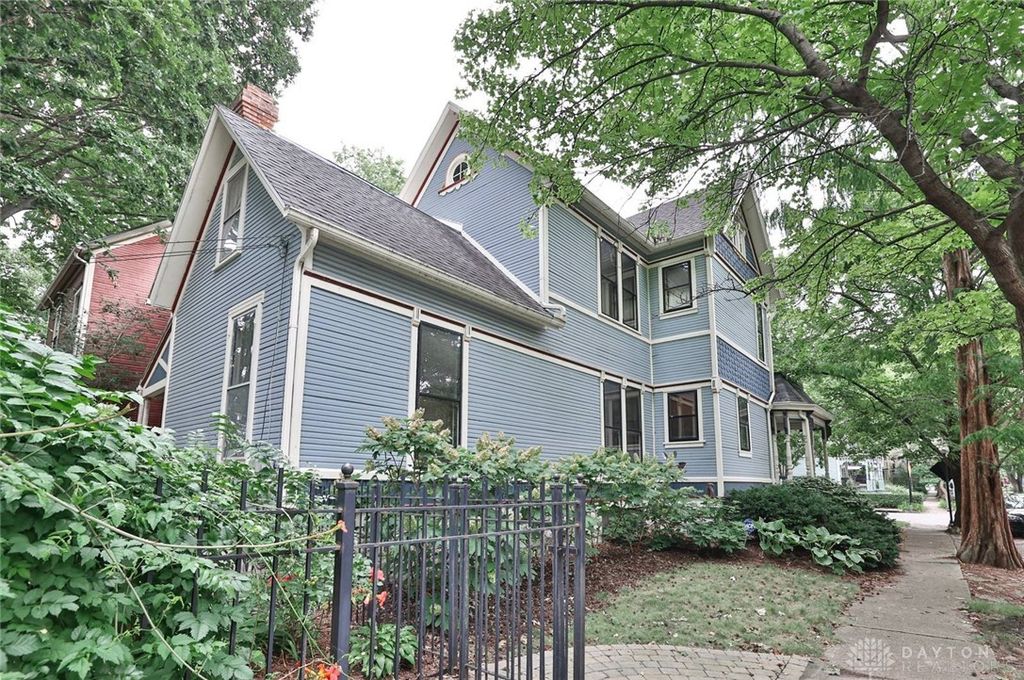 Step into timeless elegance with this 1886 Queen Anne masterpiece, perfectly situated in the heart of Dayton's historic McPherson Town District "” one of the city's most walkable and vibrant neighborhoods. Just a short stroll from the Schuster Center, Riverscape, the Dayton Art Institute, and River's Edge Montessori School, this location blends historic charm with modern convenience. Encompassing 3,445 square feet of architectural splendor, this 3-bedroom, 3-bath home marries late 19th-century craftsmanship with contemporary livability. From intricate woodwork and soaring ceilings to extensive wall-to-wall bookcases, every detail tells a story. The exterior, painted in five complementary hues, highlights the home's ornamental details and rivals the finest Painted Ladies found anywhere. Inside, the first-floor library features a full wall of floor-to-ceiling bookcases, with walls sponge-painted in five rich shades of burgundy. Original sliding doors allow the space to be closed off for quiet reading or study. Upstairs, a second-floor front room with large bay windows and another wall of built-in bookcases provides an ideal home office or study bathed in natural light. Inviting first- and second-floor porches are perfect for morning coffee or evening relaxation, while a rare three-car detached garage offers exceptional convenience in a historic district. Sun-filled rooms, preserved period features, and grand entertaining spaces echo the grace and beauty of the era. Whether you're a history enthusiast, book lover, or simply someone seeking character and charm, this home delivers in every way. Don't miss your chance to own a piece of Dayton's rich history "” a true Queen Anne Painted Lady gem awaits your arrival.