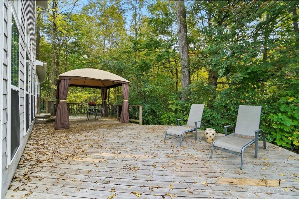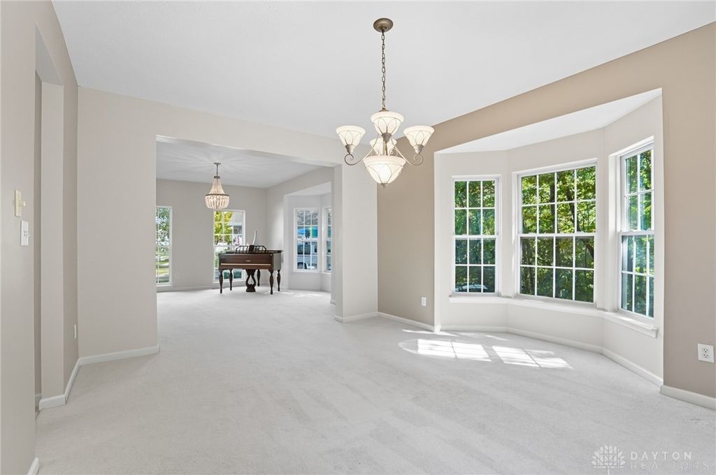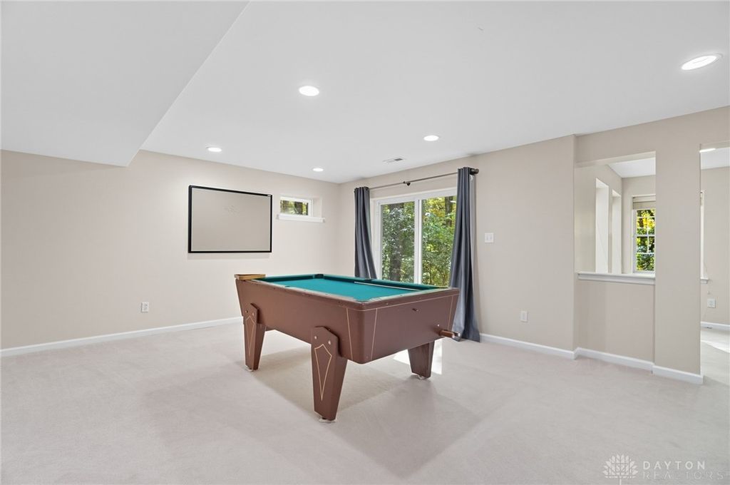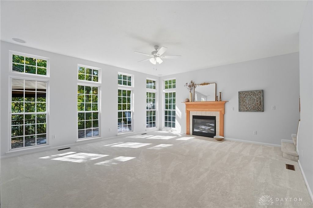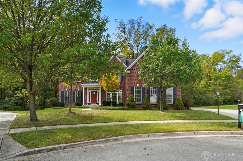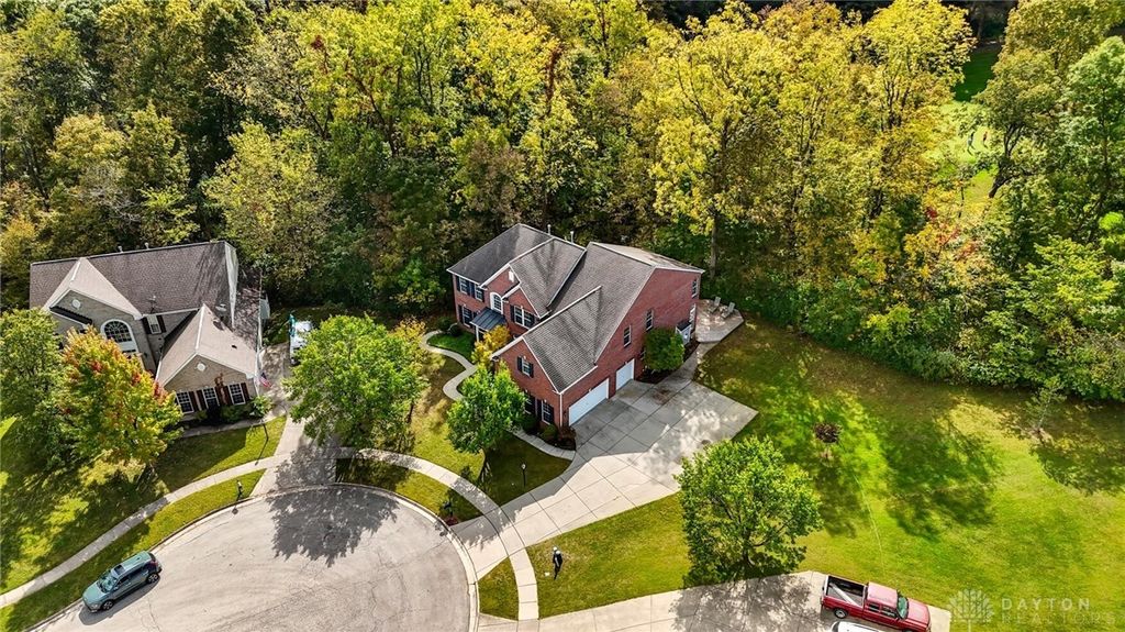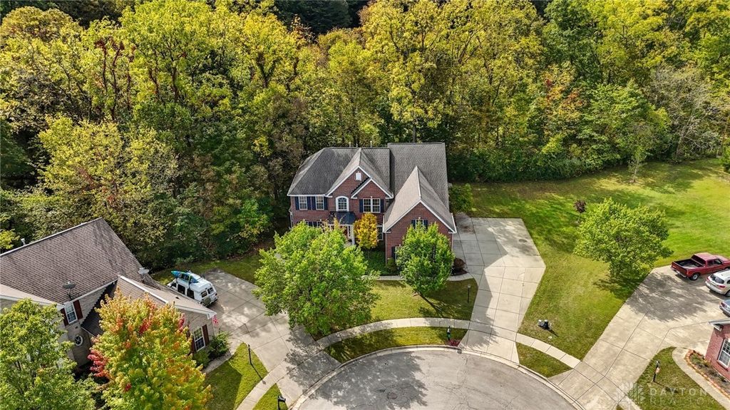 Palatial Golf Course Living at a phenomenal value of $108 per sq ft. The best value you'll find in Beavercreek for over 6200 sq ft living space!! Wake up every morning overlooking the 6th hole on the Beavercreek Golf Course. Feel an instant calm and connection to nature here. Dappled light cascades into extra bay windows and floor-to-ceiling windows surrounded by a beautiful wooded lot that's well over a half acre. Three floors of vast space with convenient dual staircases! Colossal bedroom upstairs will have you thinking overtime how to use that amazing extra space! Enormous, freshly-painted finished walk-out basement looks brand new. This gem sits on quiet cul de sac in highly desirable Canterbury Trails / Beavercreek Schools Neighborhood. Brick home thoughtfully built, well-maintained by single owner. Expansive Gourmet Kitchen Island plus extra Countertop Space ideal for entertaining. Kitchen Exhaust vents outside. Gas AND Electric range hookup. Ceiling speakers. Gravity Flow Hot Water Return Line. Finished Basement built with extra drain tile and raised flooring to provide ventilation between floor and concrete. Primary and secondary bedrooms offer ensuite bathrooms. Primary bedroom has separate walk-in closets and vanities, and a connected sitting room flanked by columns. Three Full Baths Upstairs. Half Bath Main Floor. Basement plumbed for full bath. Tall ceilings throughout, extra long laundry room. Property includes wooded lot between house and golf course! Brand new Dishwasher and New Hot Water Heater. Bar Pool Table, Tennis Table, Treadmill, Gazebo convey. HVAC Professionally Serviced Sept 2025. Professionally-Washed Windows & Carpet. House Soft-Washed 2025. Oversized 3-car garage. Clean and Move-in ready! Easy access to I-675, Shopping, Restaurants, Entertainment, Wright State and WPAFB. Please rely on own measurements. Gas Fireplace not warranted. This truly spacious and private home on the golf course is ready to welcome you home! Occupancy at close.