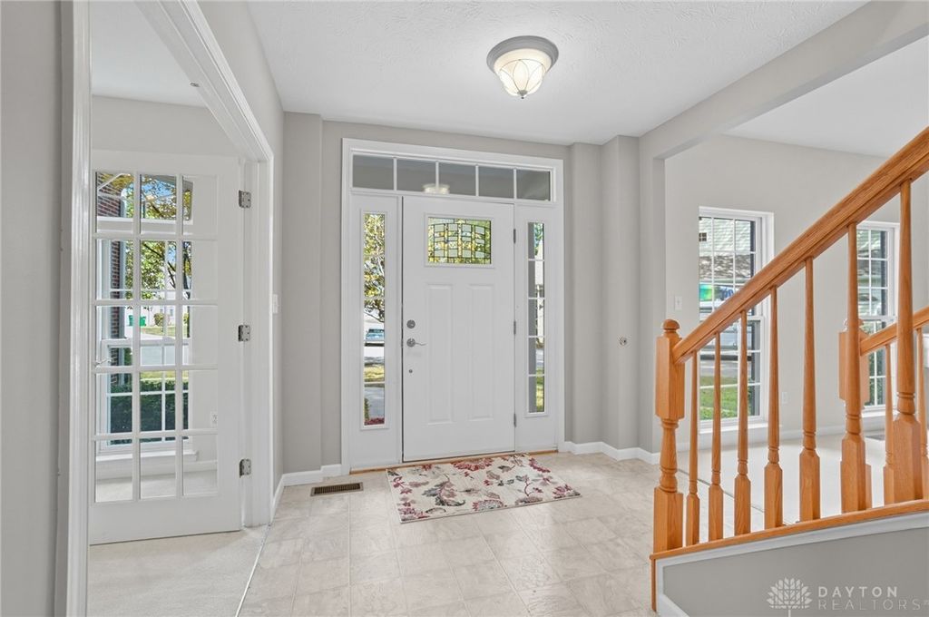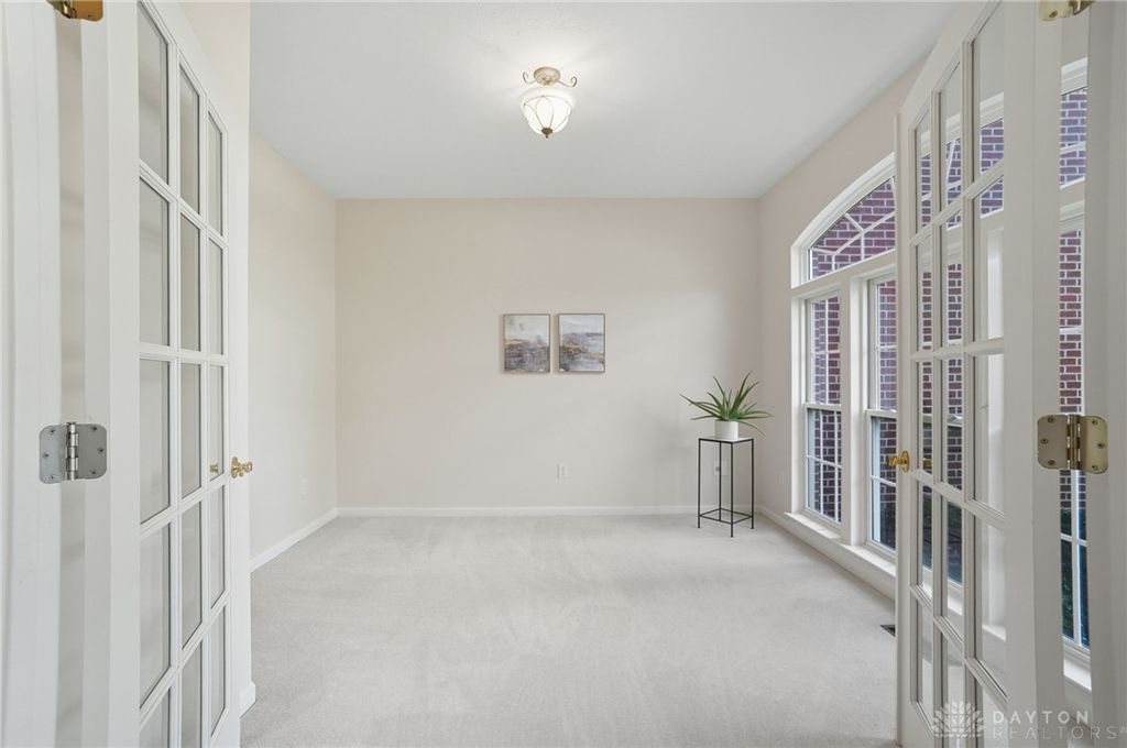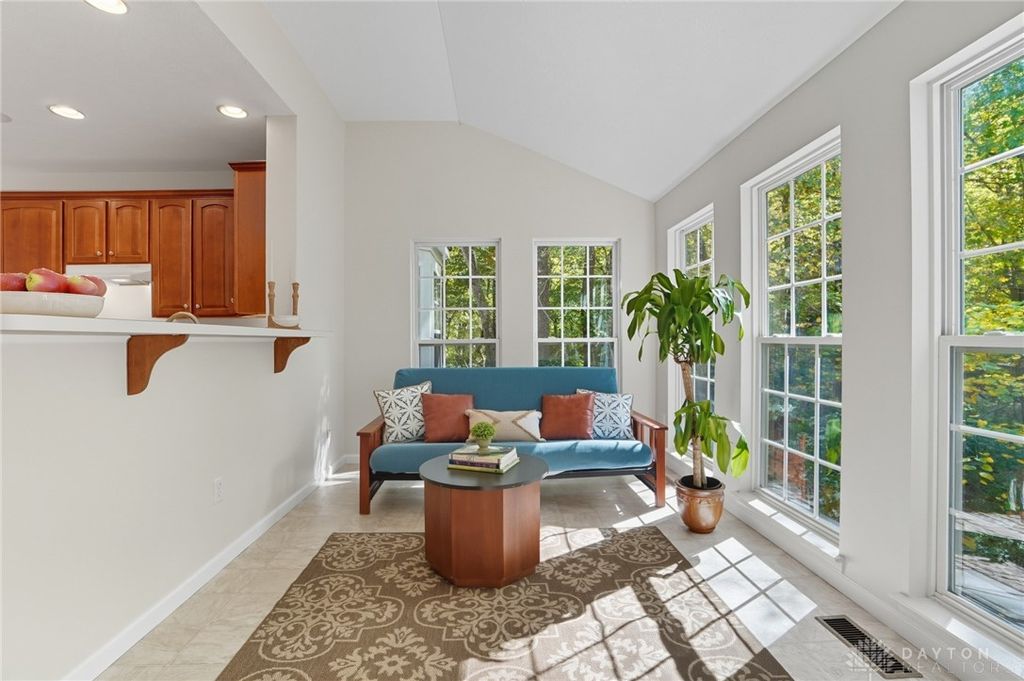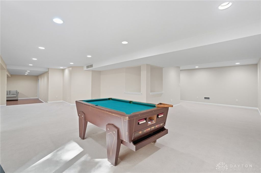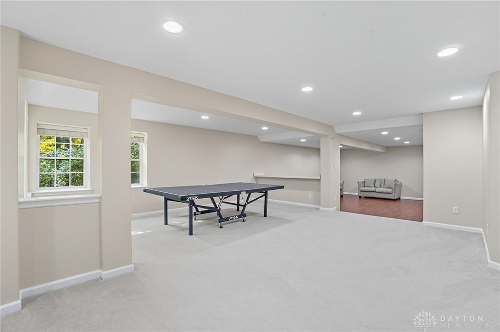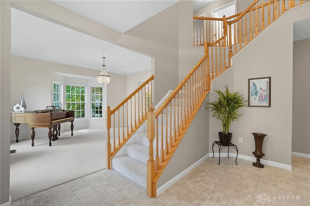 Palatial Golf Course Living at a phenomenal value of $108 per sq ft. The best value you'll find in Beavercreek for over 6200 sq ft living space!! Wake up every morning overlooking the 6th hole on the Beavercreek Golf Course. Feel an instant calm and connection to nature here. Dappled light cascades into extra bay windows and floor-to-ceiling windows surrounded by a beautiful wooded lot that's well over a half acre. Three floors of vast space with convenient dual staircases! Colossal bedroom upstairs will have you thinking overtime how to use that amazing extra space! Enormous, freshly-painted finished walk-out basement looks brand new. This gem sits on quiet cul de sac in highly desirable Canterbury Trails / Beavercreek Schools Neighborhood. Brick home thoughtfully built, well-maintained by single owner. Expansive Gourmet Kitchen Island plus extra Countertop Space ideal for entertaining. Kitchen Exhaust vents outside. Gas AND Electric range hookup. Ceiling speakers. Gravity Flow Hot Water Return Line. Finished Basement built with extra drain tile and raised flooring to provide ventilation between floor and concrete. Primary and secondary bedrooms offer ensuite bathrooms. Primary bedroom has separate walk-in closets and vanities, and a connected sitting room flanked by columns. Three Full Baths Upstairs. Half Bath Main Floor. Basement plumbed for full bath. Tall ceilings throughout, extra long laundry room. Property includes wooded lot between house and golf course! Brand new Dishwasher and New Hot Water Heater. Bar Pool Table, Tennis Table, Treadmill, Gazebo convey. HVAC Professionally Serviced Sept 2025. Professionally-Washed Windows & Carpet. House Soft-Washed 2025. Oversized 3-car garage. Clean and Move-in ready! Easy access to I-675, Shopping, Restaurants, Entertainment, Wright State and WPAFB. Please rely on own measurements. Gas Fireplace not warranted. This truly spacious and private home on the golf course is ready to welcome you home! Occupancy at close.