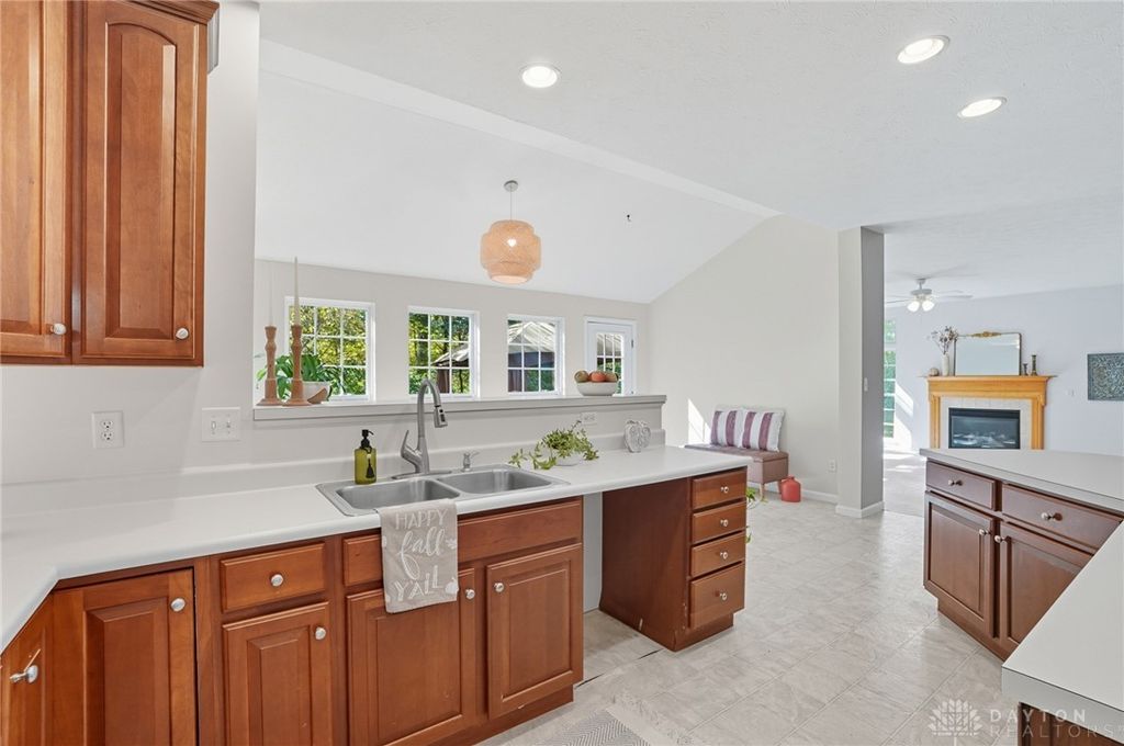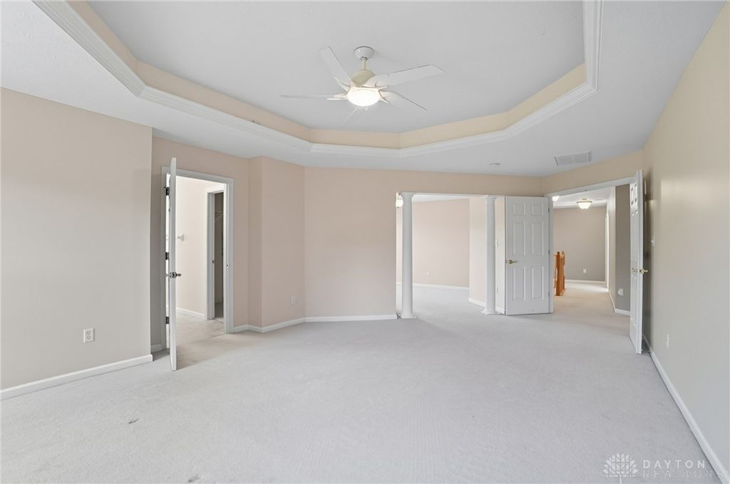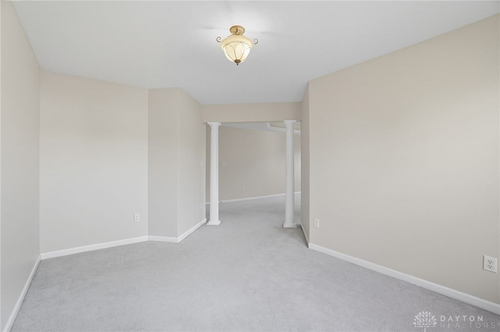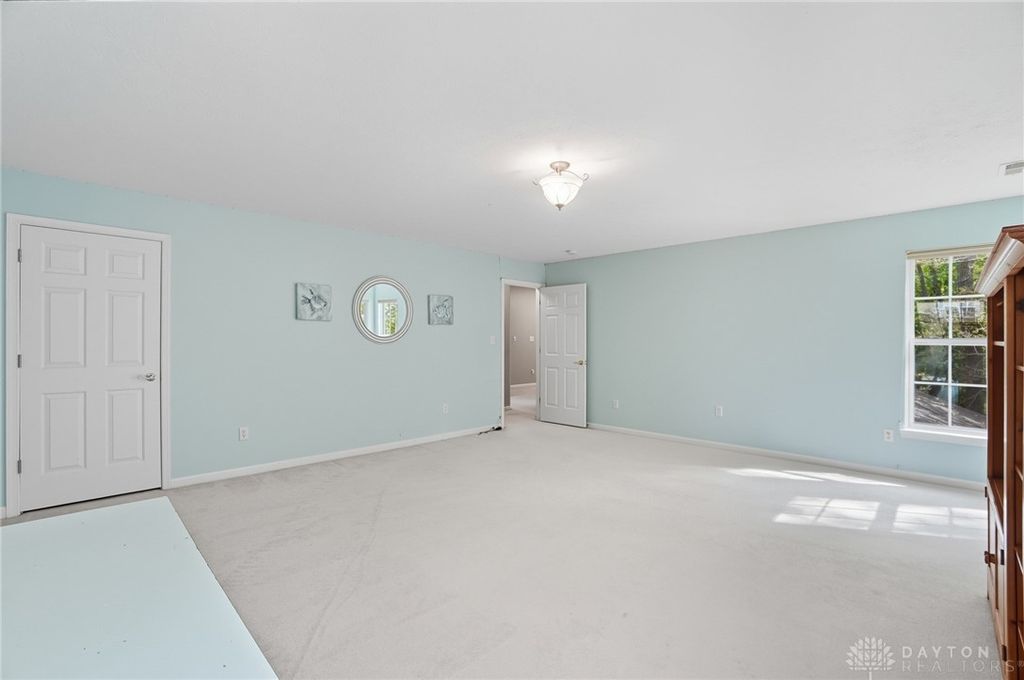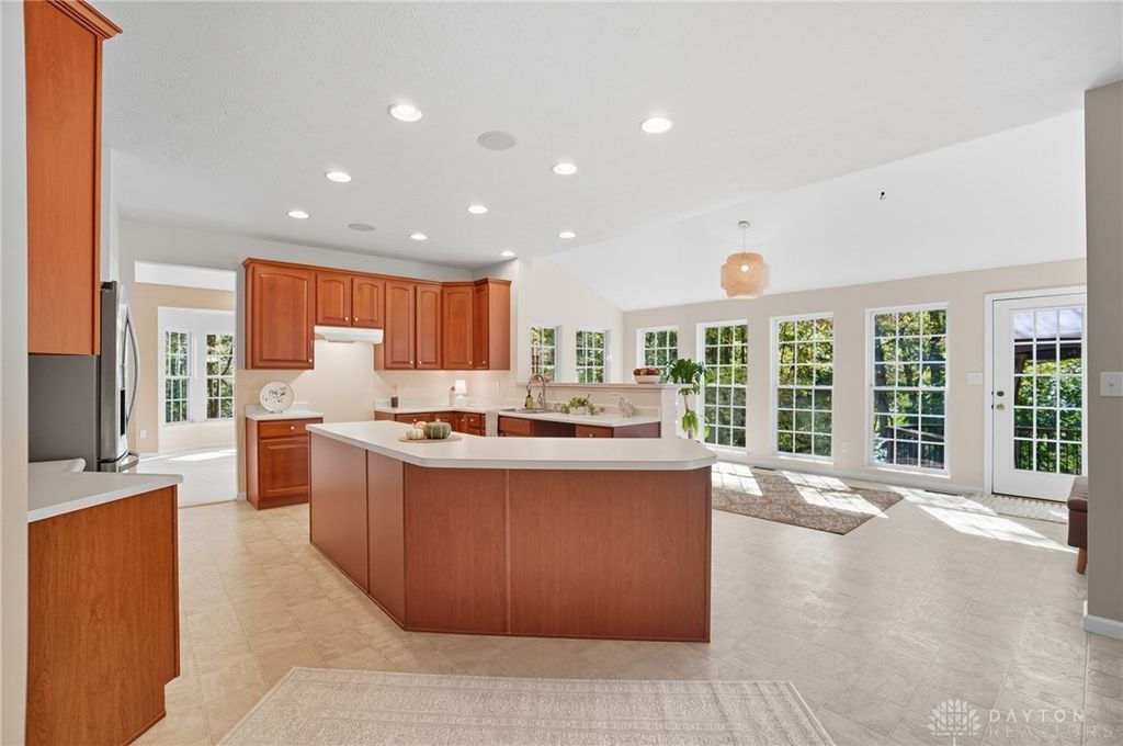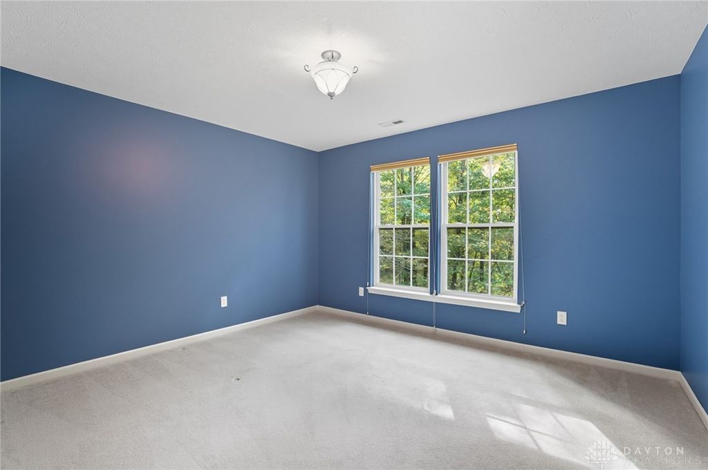 Palatial Golf Course Living at a phenomenal value of $108 per sq ft. The best value you'll find in Beavercreek for over 6200 sq ft living space!! Wake up every morning overlooking the 6th hole on the Beavercreek Golf Course. Feel an instant calm and connection to nature here. Dappled light cascades into extra bay windows and floor-to-ceiling windows surrounded by a beautiful wooded lot that's well over a half acre. Three floors of vast space with convenient dual staircases! Colossal bedroom upstairs will have you thinking overtime how to use that amazing extra space! Enormous, freshly-painted finished walk-out basement looks brand new. This gem sits on quiet cul de sac in highly desirable Canterbury Trails / Beavercreek Schools Neighborhood. Brick home thoughtfully built, well-maintained by single owner. Expansive Gourmet Kitchen Island plus extra Countertop Space ideal for entertaining. Kitchen Exhaust vents outside. Gas AND Electric range hookup. Ceiling speakers. Gravity Flow Hot Water Return Line. Finished Basement built with extra drain tile and raised flooring to provide ventilation between floor and concrete. Primary and secondary bedrooms offer ensuite bathrooms. Primary bedroom has separate walk-in closets and vanities, and a connected sitting room flanked by columns. Three Full Baths Upstairs. Half Bath Main Floor. Basement plumbed for full bath. Tall ceilings throughout, extra long laundry room. Property includes wooded lot between house and golf course! Brand new Dishwasher and New Hot Water Heater. Bar Pool Table, Tennis Table, Treadmill, Gazebo convey. HVAC Professionally Serviced Sept 2025. Professionally-Washed Windows & Carpet. House Soft-Washed 2025. Oversized 3-car garage. Clean and Move-in ready! Easy access to I-675, Shopping, Restaurants, Entertainment, Wright State and WPAFB. Please rely on own measurements. Gas Fireplace not warranted. This truly spacious and private home on the golf course is ready to welcome you home! Occupancy at close.