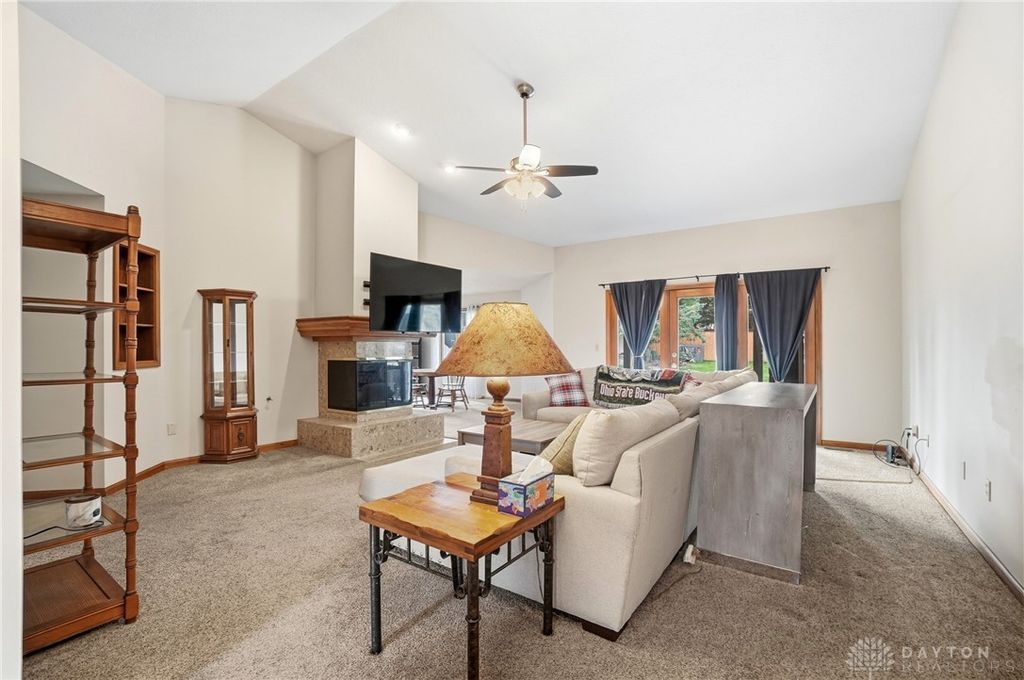Beautifully maintained brick ranch tucked away on a quiet cul-de-sac in one of the area's most desirable neighborhoods. Designed for comfort and everyday living, this home offers an ideal balance of open gathering spaces, private retreats, and inviting outdoor areas perfect for relaxing or entertaining. Inside, you'll find a bright and welcoming floor plan highlighted by vaulted ceilings, large windows, neutral finishes, three sided gas fireplace and easy flow between rooms. The spacious living room offers abundant natural light and connects seamlessly to the dining area and kitchen, creating a comfortable setting for family life and casual entertaining. The kitchen features warm cabinetry, granite countertops, quality appliances, and generous counter space, along with a breakfast bar that's perfect for quick meals or conversation while cooking. A cozy family room at the rear of the home opens directly to the covered patio, extending the living space outdoors. The primary suite provides a peaceful retreat with an en-suite bath and ample closet storage. Two additional bedrooms with large closets are well-proportioned and versatile"”ideal for guests, a home office, or creative space. Both bathrooms have been tastefully updated with modern fixtures and finishes. Additional highlights include a dedicated laundry room, extra storage options, and an attached two-car garage with built-in shelving. The fenced backyard offers a private oasis featuring a covered patio, a charming pergola, and plenty of lawn space for gardening, play, or pets. Situated just minutes from Tipp City schools, parks, restaurants, and the historic downtown district, this property blends small-town charm with modern convenience. This home delivers the perfect combination of comfort, style, and function"”ready for you to move in and make it your own. Items that convey are the electric range, microwave, refrigerator, dishwasher, washer & dryer, pergola and the TV over Fireplace.