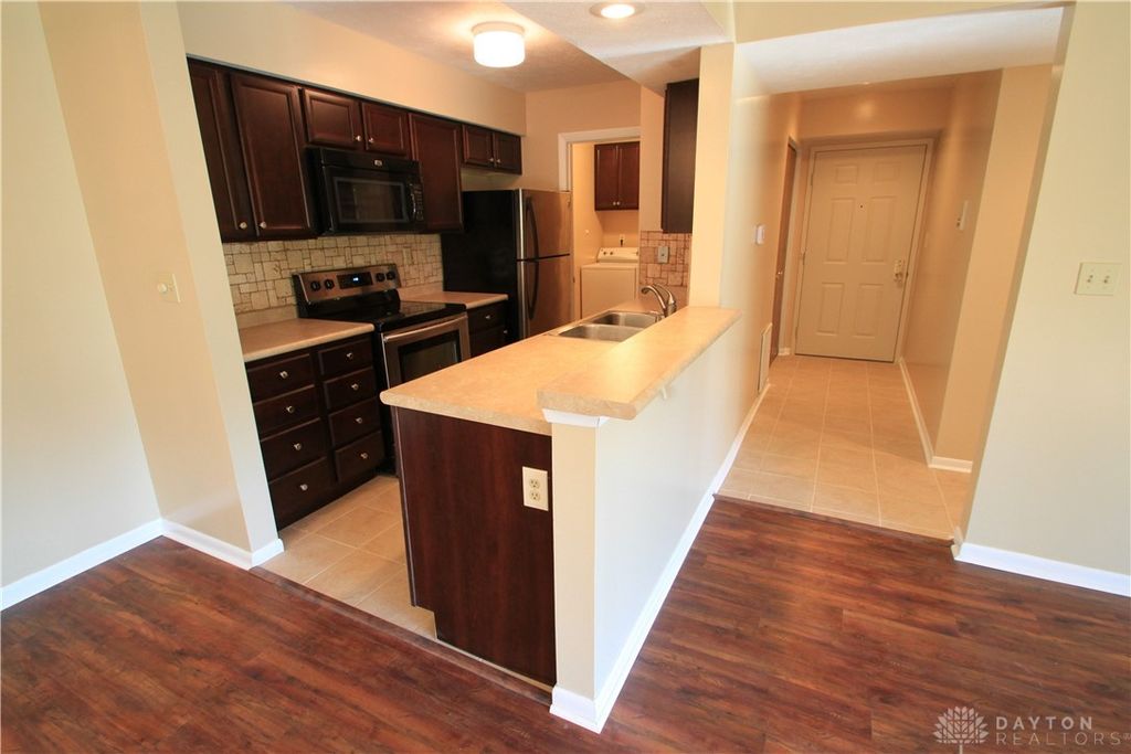 Welcome to this highly desirable community close to Wilmington Pike, Cornerstone and MVH South. This updated split floorplan condo is a high-demand end unit with a one car garage, and it backs up to a small, tranquil pond and being the end building of the community it overlooks open greene space on the side of it. The condo features two bedrooms with walk in spacious closets, two full bathrooms, a ceramic tiled entrance way, kitchen, laundry room and a pantry in the kitchen. Laminate flooring compliments both bedrooms and the large main living area. The condo has ceiling fans, stainless steel appliances and it has been meticulously maintained. An updated neutral paint pallet completes this wonderful condo. The condo comes with a spacious one-car detached end garage and a separate storage unit down the hall from the condo. Village of Willow Creek features the following amenities: lighted tennis courts, clubhouse with a fitness center, sauna, showers, private community room available for rental, a jacuzzi inside the clubhouse, and an outdoor pool (seasonal). This is a wonderful location just minutes from Costco, Lowe's, Kroger, great restaurants, indoor/outdoor tennis at KTC Quail, physician and veterinary offices and it's 15-minutes from The Greene, and 20-minutes from WPAFB. Come see this rare find end-unit condo at Village of Willow Creek and step into it as your new home!!