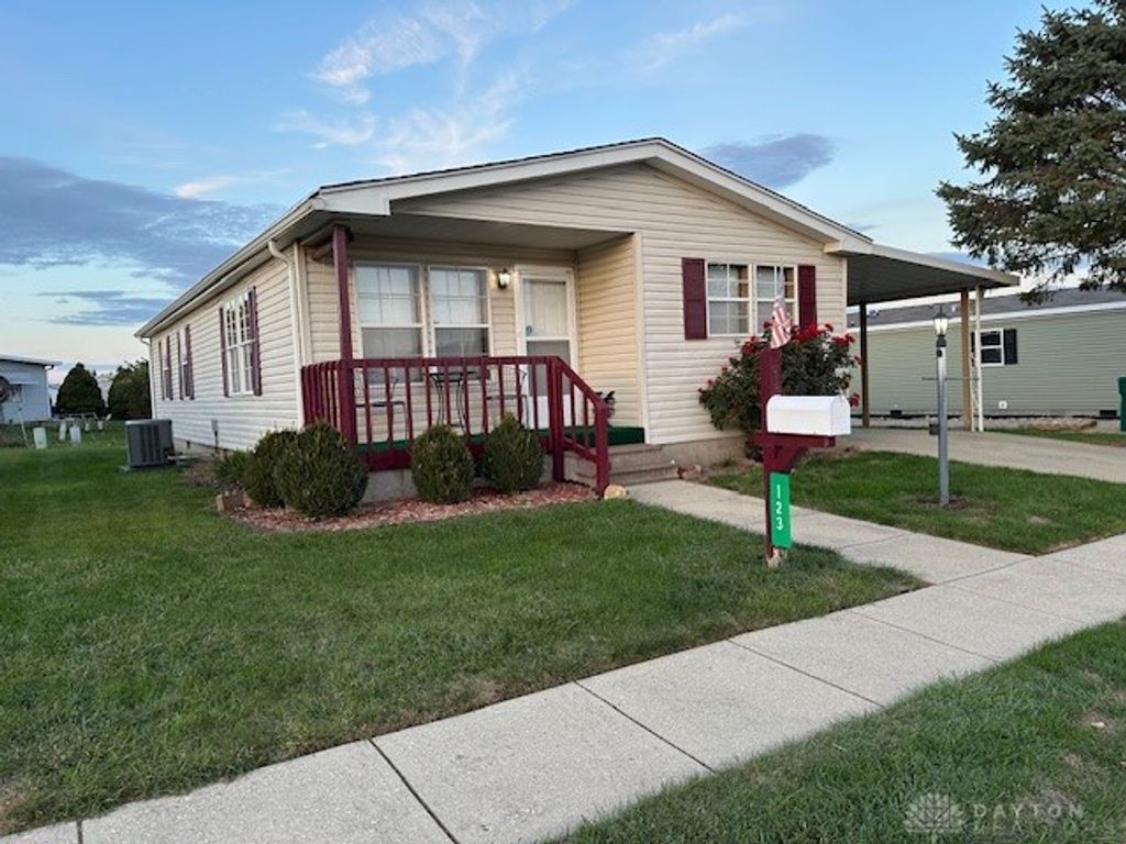 Come see this great new listing in south point village in fairborn. Located in this quiet, lovely community of 55+ residents, it just may be what you are looking for. This 2 bed, 2 bath home has an open concept kitchen, dining and living area. Two full bathrooms and 2 bedrooms along with a convenient laundry area. A one car attached garage as well as a carport for one vehicle are attached. Garage does have opener. Lovely landscaped lot and loads of wonderful neighbors. Call and schedule an appointment to view before this beauty is gone.